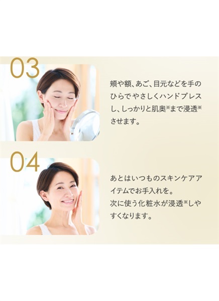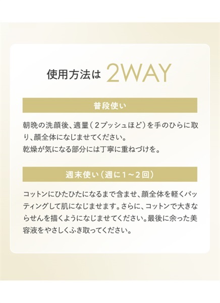 朝晩の洗顔後にお使いください。その後いつものお手入れ(化粧水など)をおこなっていただくことをおすすめいたします。